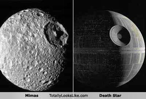 Mimas es un satelite de saturno descubierto en 1789 por William Herschel.Mimas tiene un crater llamado Herschel.Este crater fue consecuencia de un impacto meteorico a 31km/s y le dejo un crater parecido al de la estrella de la muerte.
